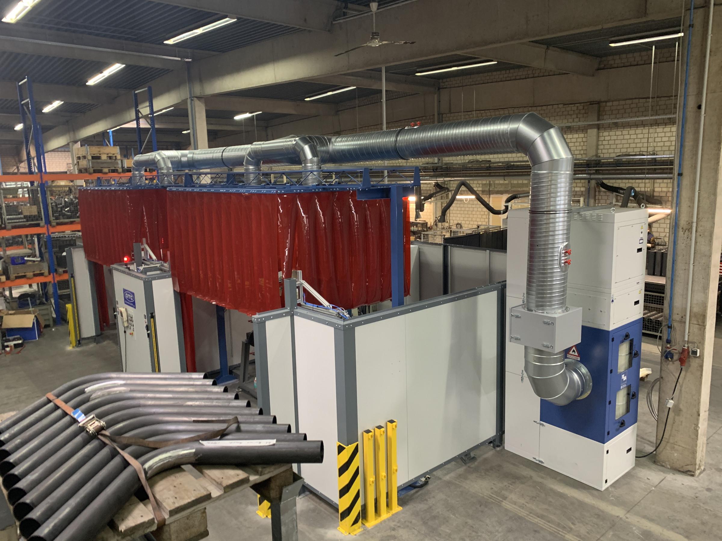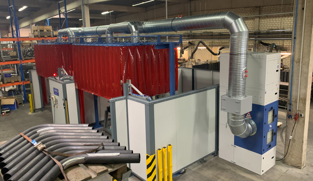 Die Filtercube 4H sorgt in den Hallen der Herbert Ackermann KG beim automatisierten Schweißen energieeffizient für gesunde Raumluft.