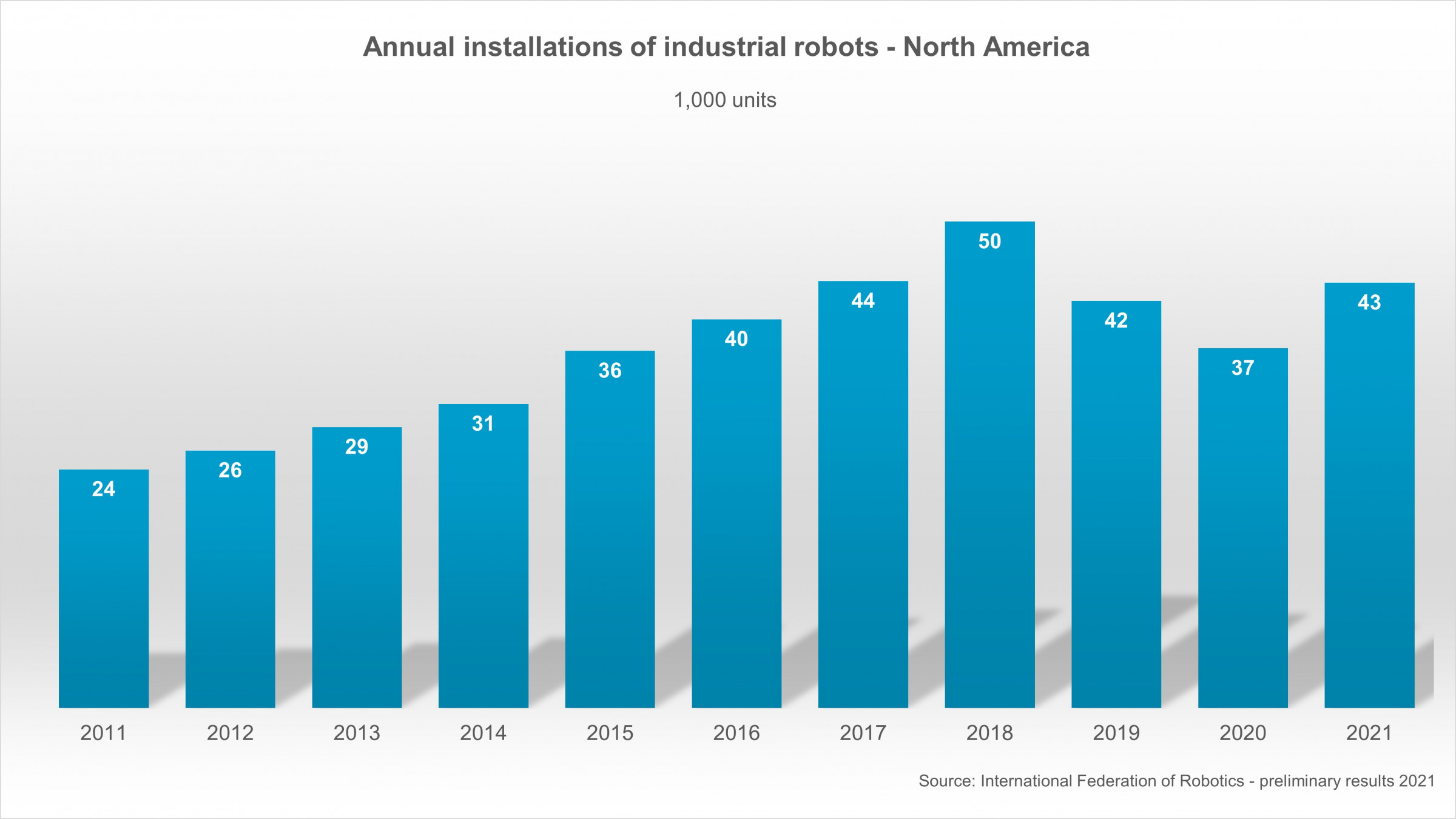 (Quelle: Presseinformation der IFR – International Federation of Robotics)