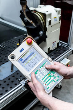 auf Anhieb rund ist und entsprechende Sicherheitsstandards bietet. Eine nicht CE-konforme Zelle ohne Einhausung hätte uns bei der Nachrüstung einen zu hohen Aufwand abverlangt. Die zuerst erwogene Lösung war auch programmiertechnisch eine Einbahnstraße: Der Übergang zu einem größeren Schweißroboter hätte anwendungstechnisch einen kompletten Neuanfang erfordert, den wir keinem unserer Kunden zumuten wollten. Bei der Schweißroboterzelle von OTC hingegen kann man direkt auf einmal erworbene Kenntnisse aufbauen.“