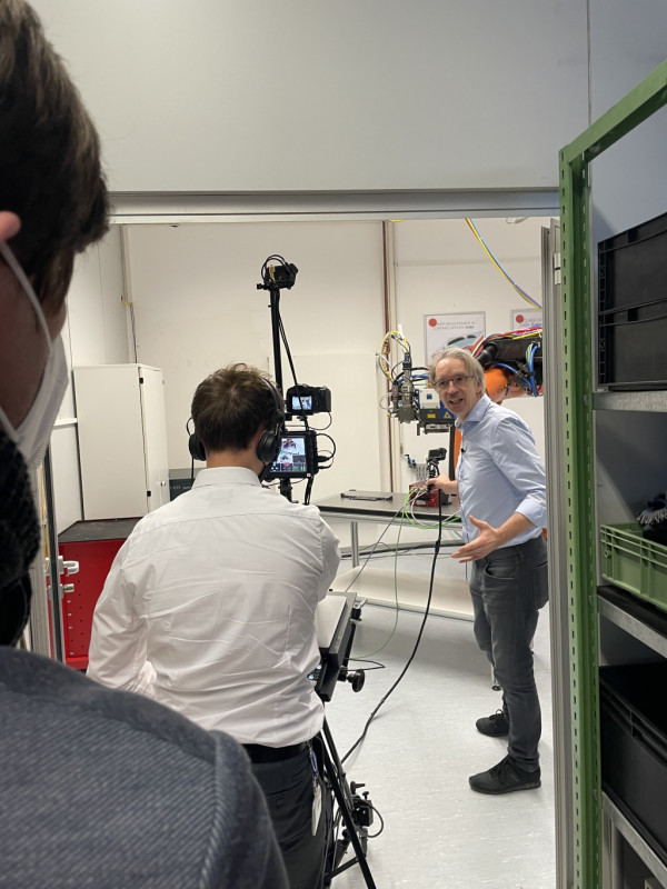 Doch zurück zum jetzigen Stand der Messdinge: Ein Highlight der virtuellen Führung war die automatisierte Prozessbegleitung. Die Funktionsweise sahen die Besucher anhand des Zusammenspiels eines Roboters mit 3D-Scanoptik und 6,6 kW-Scheibenlaser: Nach der Bearbeitung des Werkstückes schwenkte der Roboter die Scanoptik auf den FocusParameterMonitor FPM, mit dem PRIMES die Laserleistung und die Intensitätsverteilung im Fokus erfasst. „Damit lässt sich bei kritischen Bearbeitungsprozessen der Laserstrahl vollständig qualifizieren“, lobte Kramer. „Das ist vor allem bei der Batteriefertigung mit ihren engen Toleranzen und kurzen Rayleighlängen von Vorteil.“