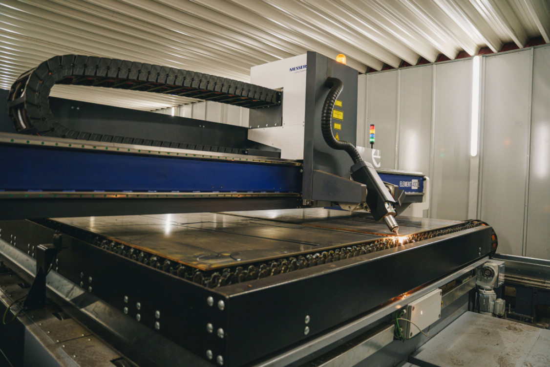 Zunächst musste die alte Plasmaschneidmaschine abgebaut und das Fundament für die neue Maschine geschaffen werden. Es folgte die Montage der speziellen Laufbahn durch Messer Cutting Systems und der Aufbau des Wechseltischsystems von Beuting. Der reguläre Produktivbetrieb der ELEMENT 400 L mit einer Schicht läuft seit Dezember 2021.