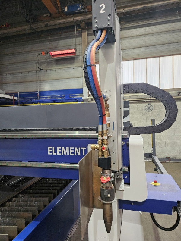 Die ELEMENT arbeitet seit Juni 2023 in Utrecht mit einem Schneidbereich von 3.000 mm x 6.600 mm. Ausgestattet ist sie mit dem Plasmafasenaggregat Bevel-S in Kombination mit einer Q 3000 plus Stromquelle von Kjellberg sowie einem ALFA-Autogen-Schneidbrenner. Komplettiert wird sie mit einem Schneidtisch der Firma Beuting einschließlich einer Filtereinheit. Hinzu kommt die aktuelle Version der CAD/CAM-Schachtel-Software OmniWin von MesserSoft mit der Option Bevel und 3D-Importmöglichkeit für Solid Edge. Mit dieser Software ist der Kunde in der Lage, 3D-Bauteile in 2D-Bauteile umzuwandeln und Schweißvorbereitungen automatisch zu erkennen.