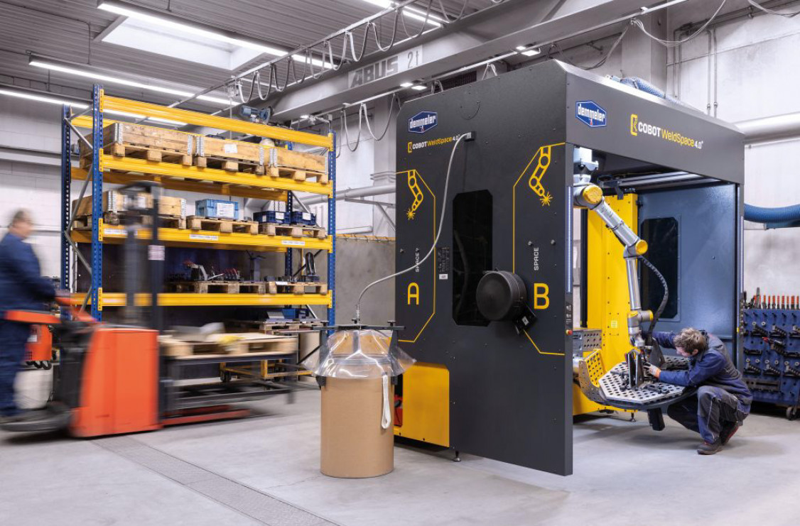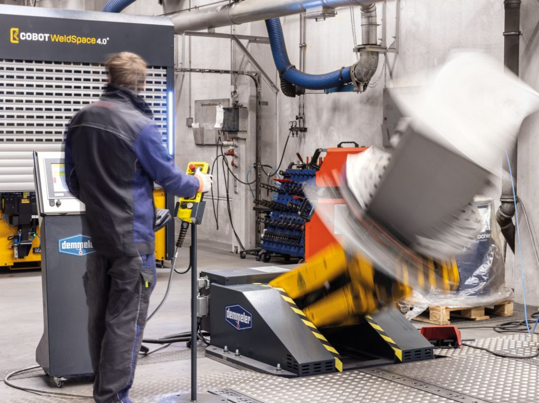 Schweißer sind derzeit gefragt wie nie, der Arbeitsmarkt ist leergefegt. Das weiß auch Carsten Stein, Geschäftsführer der Schulz Fördersysteme GmbH in Thüringen. Umso wichtiger ist es für Ihn, seine qualifizierten Arbeitskräfte optimal einzusetzen, um die vollen Auftragsbücher bedienen zu können. Die Lösung war eine teilweise Automatisierung der Handschweißarbeitsplätze, die einfach zu programmieren und auch bei kleinen Losgrößen rentabel ist. Seit einigen Monaten setzt das Unternehmen neben einem DEMMELER Manipulator und Schienensystem nun auch auf eine neue COBOT-Anlage. Die COBOT WeldSpace 4.0® von DEMMELER übernimmt das Lichtbogenschweißen von S235/S355 und S420 Stahlbaugruppen.
