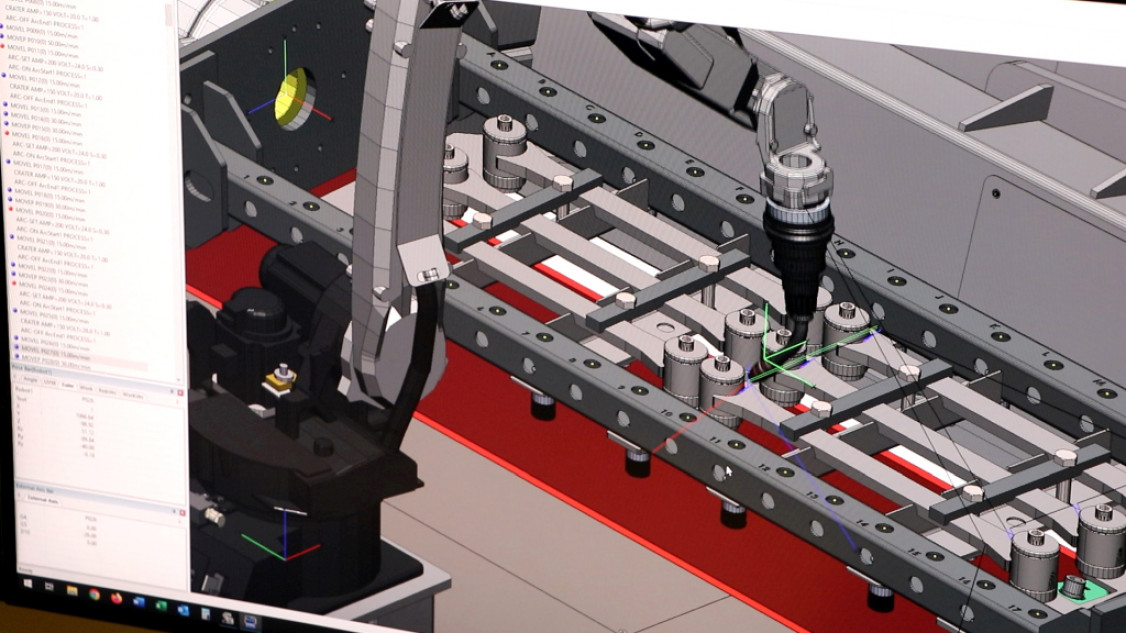 Zum Erstellen und Bearbeiten der Schweißprogramme stehen praktische Features, wie etwa die Shift-, Dreh-, Kopier- oder Spiegelfunktion, zur Verfügung. Das Programm erstellt nicht nur die Bewegungsbefehle des Roboters, sondern gestattet auch die Eingabe der Schweißparameter und -geschwindigkeit. Bei Bedarf steht in der Software der Schweißnavigator unterstützend zur Verfügung und erleichtert den Produktionseinstieg. Zum Funktionsumfang von Panasonic DTPS gehören aber auch beispielsweise das Importieren von externen CAD-Daten, Zugänglichkeitsanalysen, die Berechnung von Schweiß- und Zykluszeiten sowie die Kollisionsüberwachung beim Programmablauf.