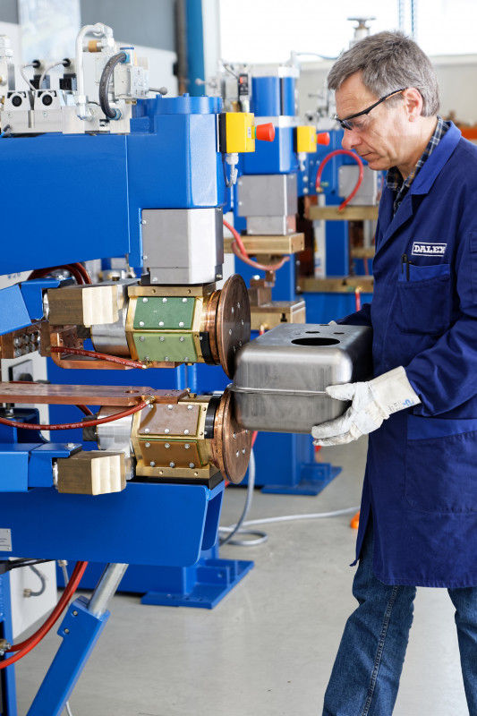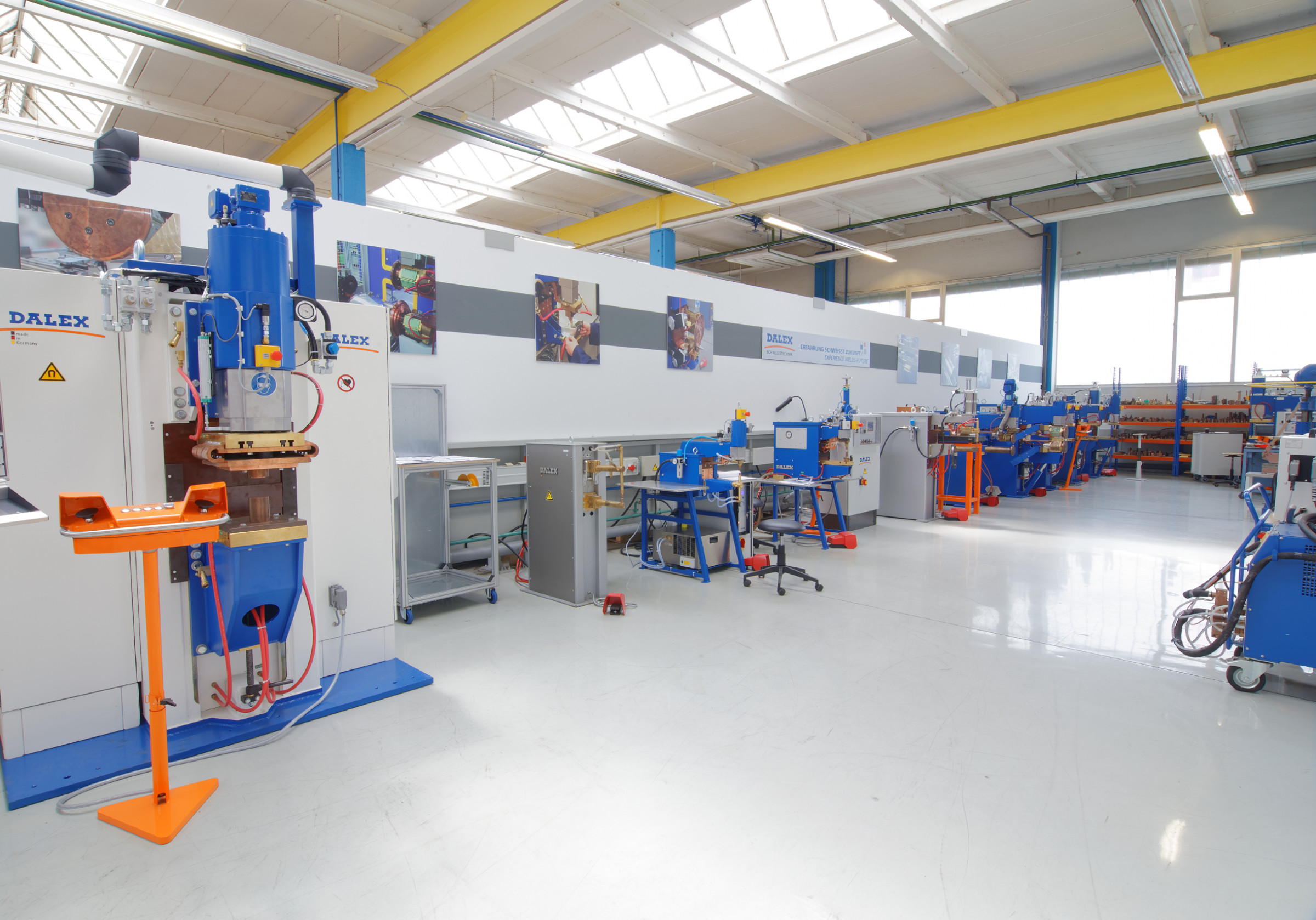 Um das beste Schweißverfahren für die jeweilige Anwendung nicht zuletzt auch anhand von Mustern zu zeigen, hat DALEX das T-Center mit einem breiten Fertigungsspektrum ausgestattet. Es stehen betriebsbereit angeschlossene Schweißzangen sowie Punkt-, Buckel- und Rollennahtschweißmaschinen in Wechselstrom-, Mittelfrequenz- und KE-Technik zur Verfügung. Die Anlagen sind mit den unterschiedlichsten Schweißsteuerungen namhafter Herstellen ausgerüstet. So können die Unterschiede demonstriert und das für die Aufgabe beste System und die passende Maschinenkonfiguration gewählt werden.