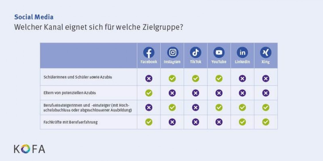 Diese Tabelle zeigt Ihnen, auf welchem Kanal die Zielgruppen unterwegs sind: