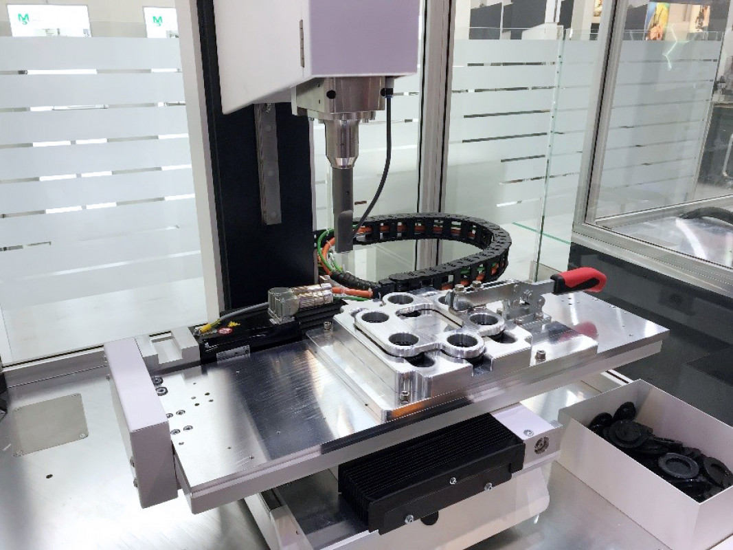 Um die volle Auslastung der Maschine zu gewährleisten und dem schnellen Prozess des Ultraschallschweißens zu folgen, bietet ein Rundschalttisch optimale Möglichkeiten: Während des Schweißens kann im Ein- und Auslegebereich zeitgleich das bereits verschweißte Teil entnommen und die Aufnahme mit dem noch zu verschweißenden Bauteil bestückt werden. Die Zeit wird effizient genutzt und