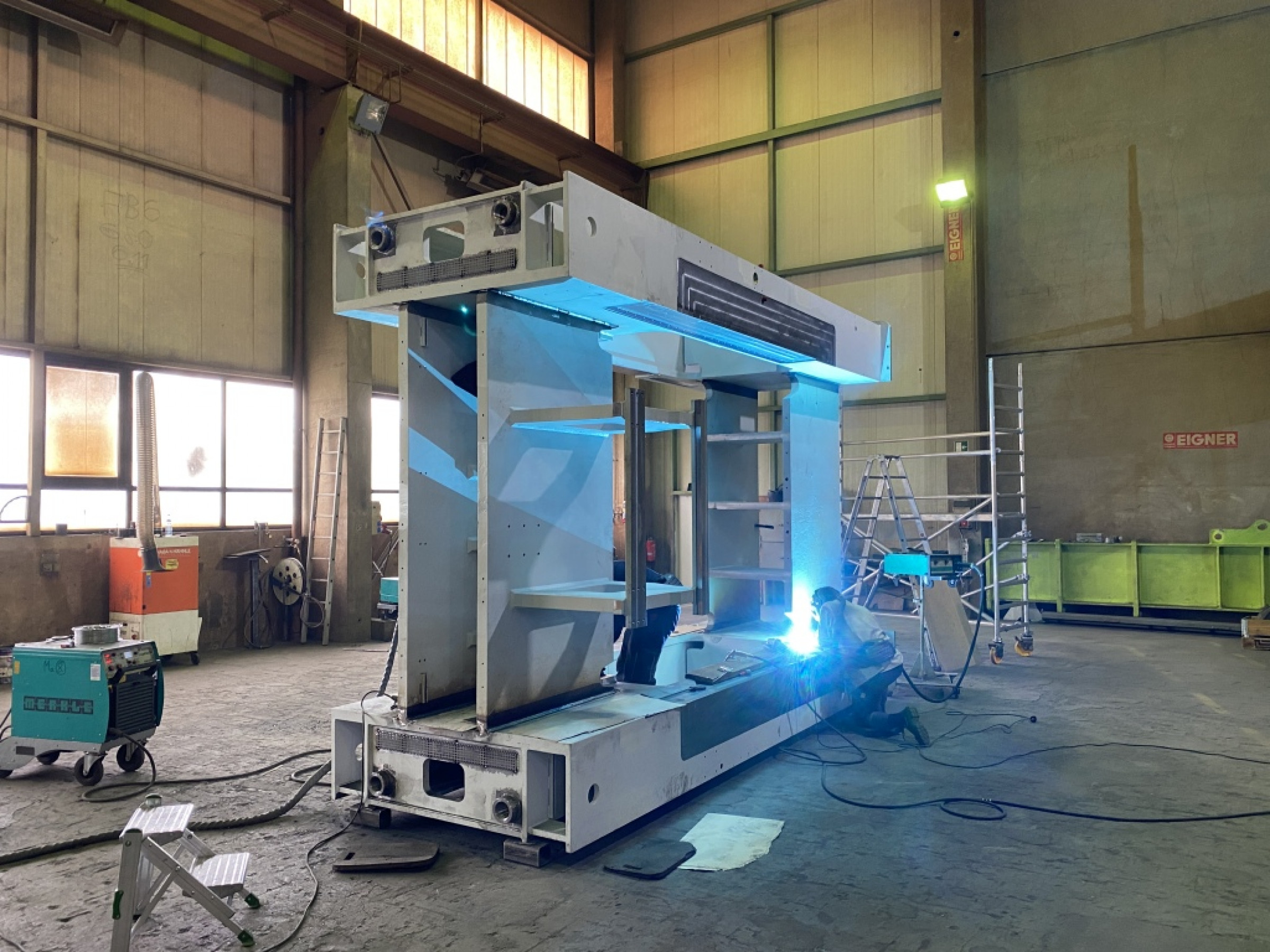 So lag es nahe, dass der skandinavische Hersteller bei einem Fertigungsengpass im eigenen Betrieb Jebens kurzfristig auch mit der anfertigung einer acht Tonnen schweren Baugruppe für einen Pressenrahmen – einbaufertig geschweißt – beauftragte. Neben der Beschaffung des erforderlichen Rohmaterials und der benötigten Zukaufteile umfasste der erste Auftrag dieser Art auch alle Folgeschritte wie Brennen, Strahlen, Fasen, Schweißen und mechanische Bearbeitung sowie Grundieren und kundenspezifisches Lackieren. Bei der Umsetzung der technischen Spezifikationen dieses ersten Schweißauftrags erwies sich die integrierte Kompetenz des Systemanbieters von Maßarbeit in Stahl als ein entscheidender Baustein zum Erfolg. Auch die anschließende Organisation des Transports übernahm der Brennschneidspezialist mit seiner versierten Logistikabteilung, sodass der gesamte Auftrag aus einer Hand realisiert wurde.