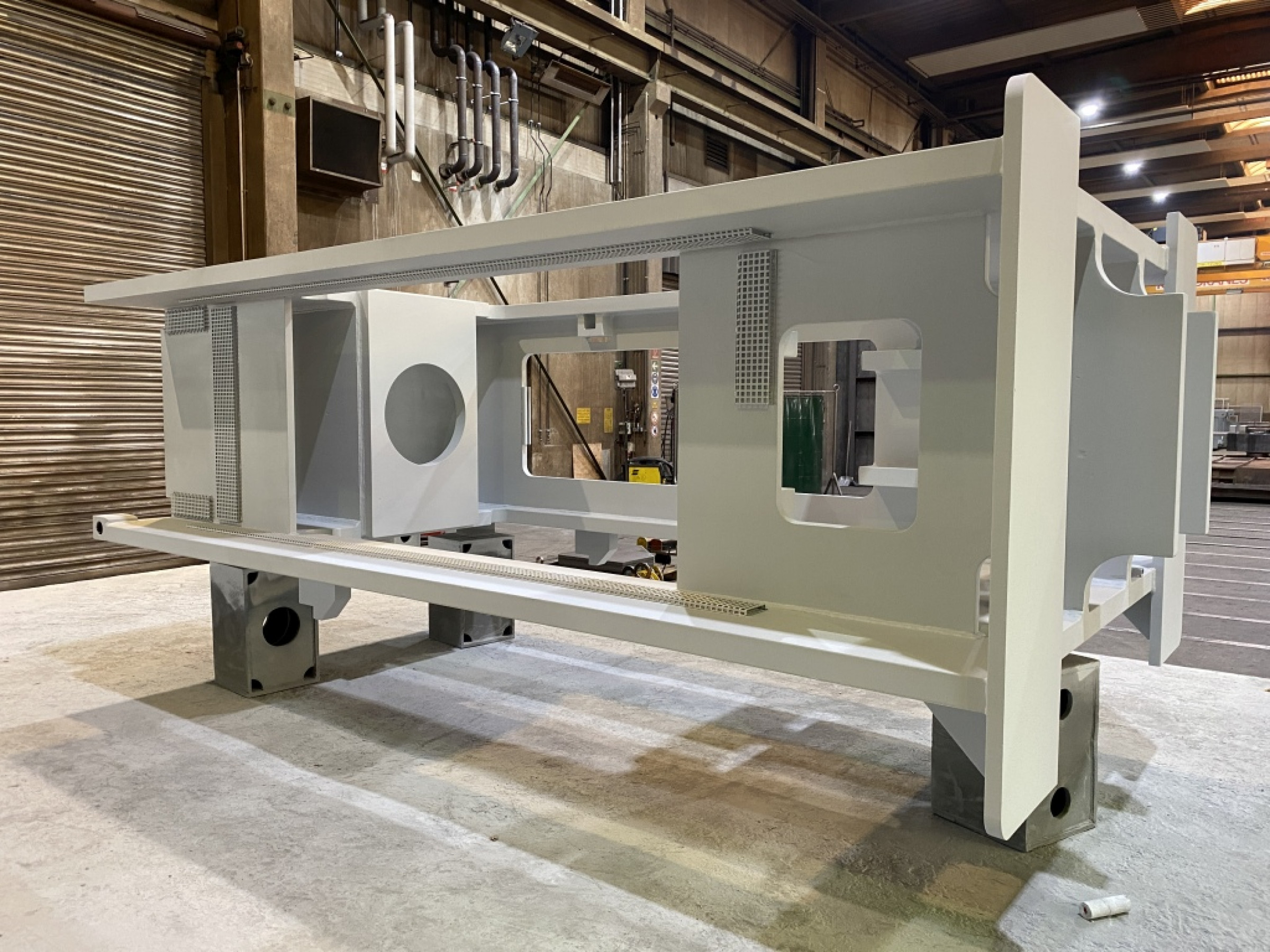 Diese reibungslose Umsetzung auf höchstem Niveau veranlasste den Kunden dazu, Jebens auch mit der Anfertigung von zwei weiteren einbaufertigen Pressenrahmen zu beauftragen: Mit 5.040 Millimetern Länge, 2.060 Millimetern Höhe und 3.450 Millimetern Tiefe sowie mit einem Gesamtgewicht von 21,4 Tonnen waren sie Paradebeispiele für die bewährte Anfertigungskompetenz derart komplexer Schweißbaugruppen von Jebens. So überzeugte der auch international immer stärker gefragte Brennschneidspezialist hier erneut mit hoher Fertigungsqualität, transparenter Projektkommunikation und Liefertreue. Diese Qualitäten honoriert der skandinavische Kunde mit kontinuierlicher Beauftragung von Folgeprojekten.