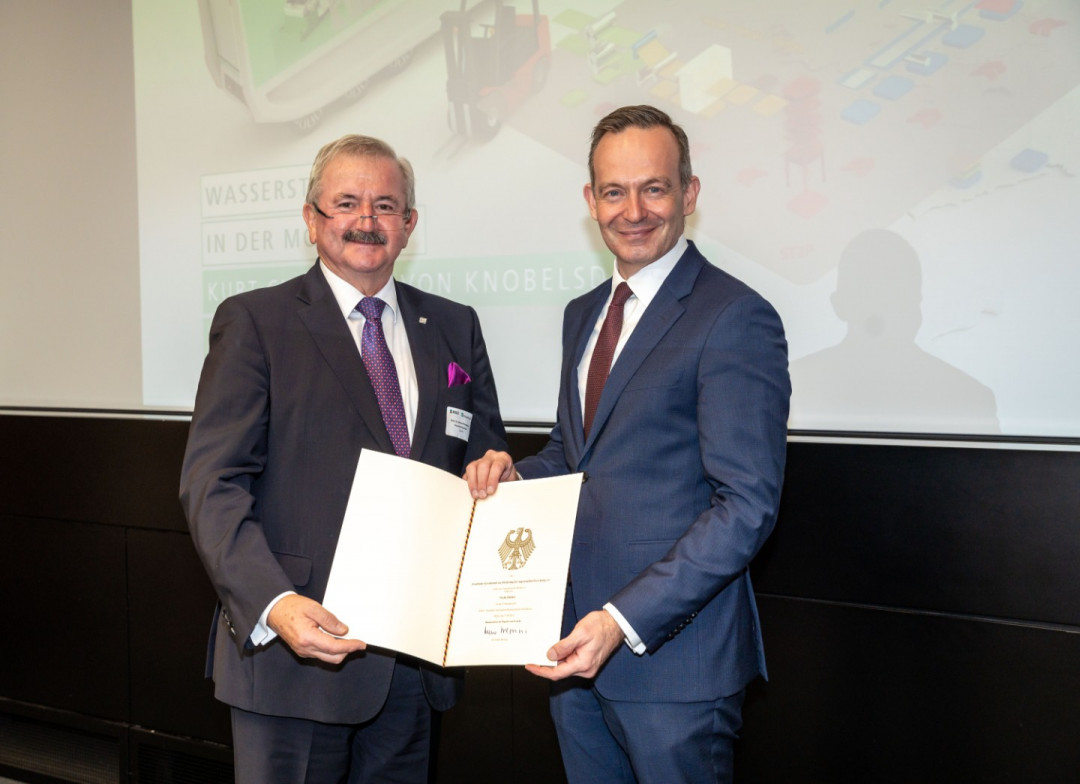 Bundesverkehrsminister Dr. Volker Wissing übergab am 13. September 2022 in Berlin den Fördermittelbescheid über rund 80 Mio. Euro für „H2GO – Nationaler Aktionsplan Brennstoffzellen-Produktion“. H2GO bündelt die Aktivitäten von 19 Fraunhofer-Instituten mit dem Ziel einer signifikanten CO2-Reduzierung in der Lastenmobilität. Im Fokus stehen dabei Entwicklung und Rollout von industriellen Technologien zur wirtschaftlichen Produktion von Brennstoffzellen, vorrangig für den straßengebundenen Schwerlastverkehr. Die Gesamtkoordination des Forschungsverbundes mit den insgesamt fünf Teilverbünden liegt beim Fraunhofer-Institut für Werkzeugmaschinen und Umformtechnik IWU.