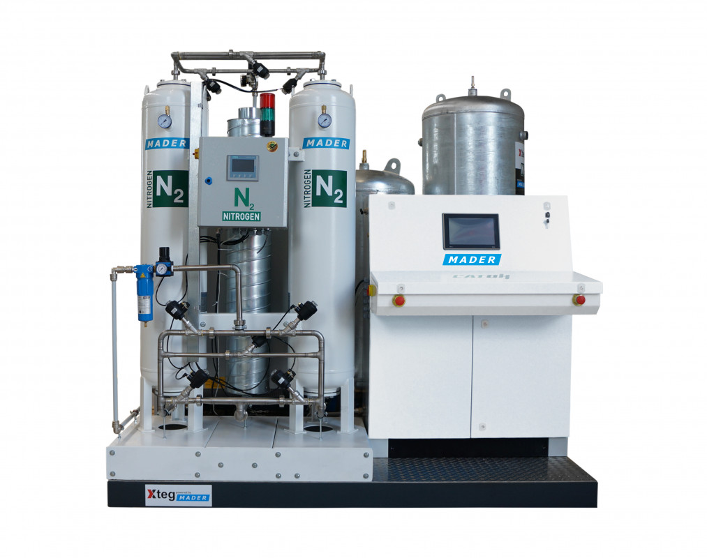 Für den Spezialisten für Faserlasermaschinen Xteg ist das die perfekte Voraussetzung, um seinen Kunden ein Komplettkonzept anbieten zu können. Das Unternehmen setzt auf die Expertise von Mader, wenn es um das Auslegen und Umsetzen der Stickstoffeigenerzeugung geht. „Bei Laserschneidanwendungen sind die Anforderungen an den benötigten Stickstoff sehr hoch. Es wird ein Druck von ca. 30 bar und eine hohe Reinheitsklasse benötigt“, so Jähnig. Auch nachträglich lasse sich die Stickstoffver-sorgung für Lasermaschinen auf Eigenerzeugung umstellen. „Wir analysieren den Laser-Stickstoffbedarf, stellen Wirtschaftlichkeitsberechnungen auf und entwickeln ein auf den Bedarf zugeschnittenes Stickstoffkonzept als Plug-and-Play-Lösung, wobei wir immer die Ausfallsicherheit und mögliche Bedarfsänderungen im Blick haben.“