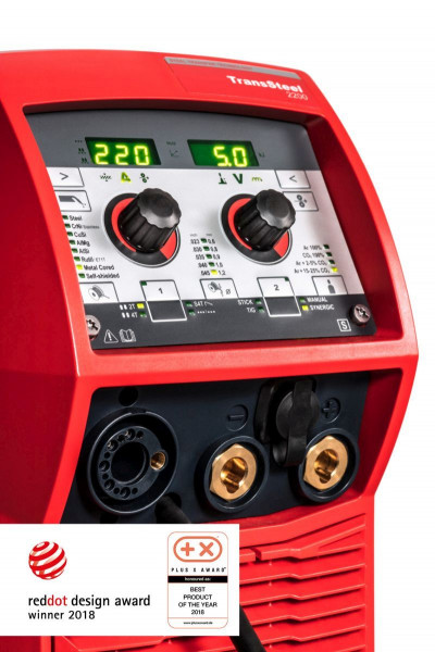 Neben der Plus X Auszeichnung als bestes Produkt hat die TransSteel 2200 auch den Red Dot Award für Produktdesign erhalten. Laut Begründung der Jury vereint das Schweißgerät Multifunktionalität mit einer beeindruckenden Kompaktheit. Auch die Bedienfreundlichkeit der TransSteel 2200 konnte überzeugen. Die Red Dot-Jury ermittelte 2018 aus mehr als 6.300 eingereichten Objekten aus 59 Nationen in einem mehrtägigen Bewertungsprozess die besten Designs.