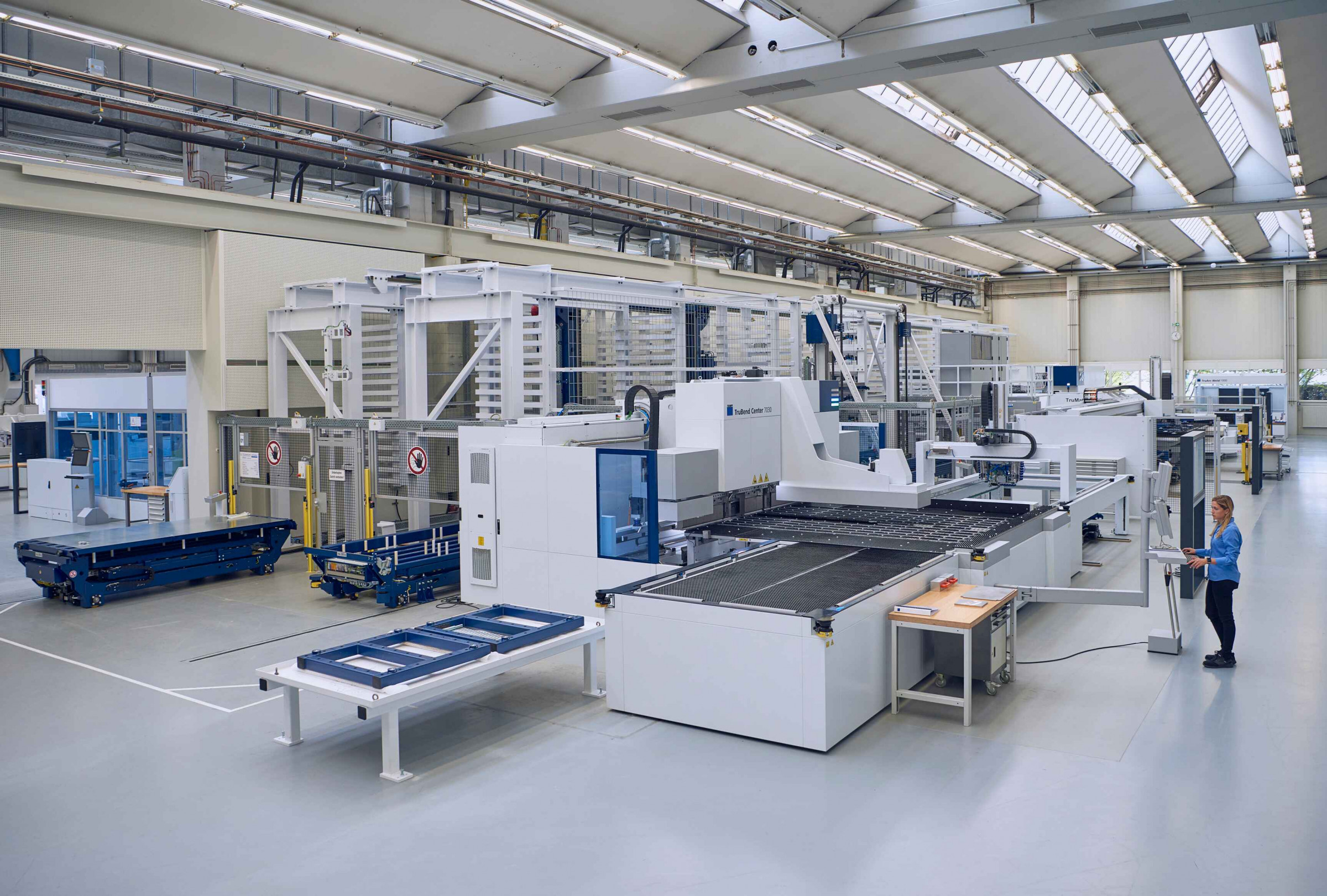 TRUMPF sieht sich künftig noch mehr als Lösungsanbieter für die gesamte Fertigung und setzt dazu auch auf Partnerschaften. Die modernen Flurförderfahrzeuge, die an den Werkzeugmaschinen Material anliefern und abtransportieren, stammen etwa vom Partner Jungheinrich. Die Lagersysteme kommen von STOPA, eine Richt- und Entgratmaschine von ARKU und eine Messmaschine von Inspecvision.