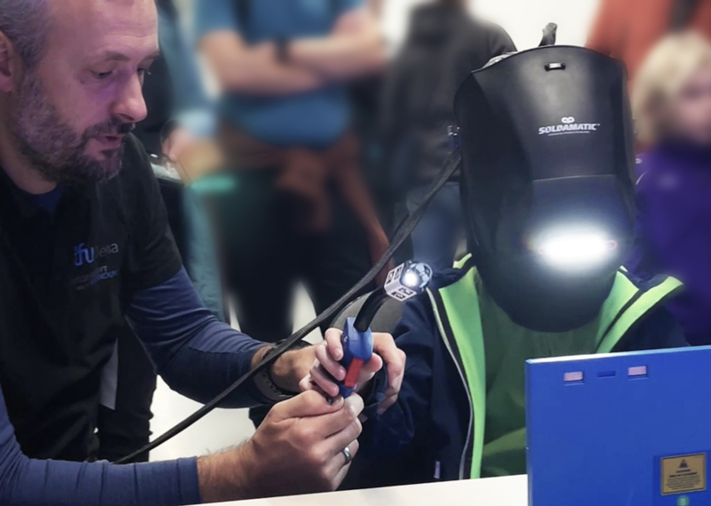 Lichtbogenschweißen konnte am virtuellen Schweißsimulator ungefährlich aber lebensecht ausprobiert werden. Unser Schweißroboter wurde zur Angelmaschine umgebaut. Und wem für sein selbst hergestelltes Spiel die Würfel fehlten, der konnte live zusehen, wie Holzwürfel im 3D-Drucker entstehen. Natürlich wurden auch Mäuse als Mitbringsel fünffarbig 3D gedruckt.