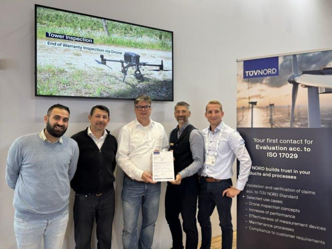 Für die Deutsche Windtechnik hat TÜV NORD erstmals die Verifizierung eines Drohnensystems abgeschlossen. Die Konformitätsbewertung dieser erfolgreichen Verifizierung wurde am 26. September 2024 auf der Fachmesse WindEnergy in Hamburg übergeben. Im Februar wurde die Technologie der Deutschen Windtechnik bereits validiert. Auch für das Startup OMI Innovation wurde die Validierung abgeschlossen; die Verifizierung folgt in Kürze.