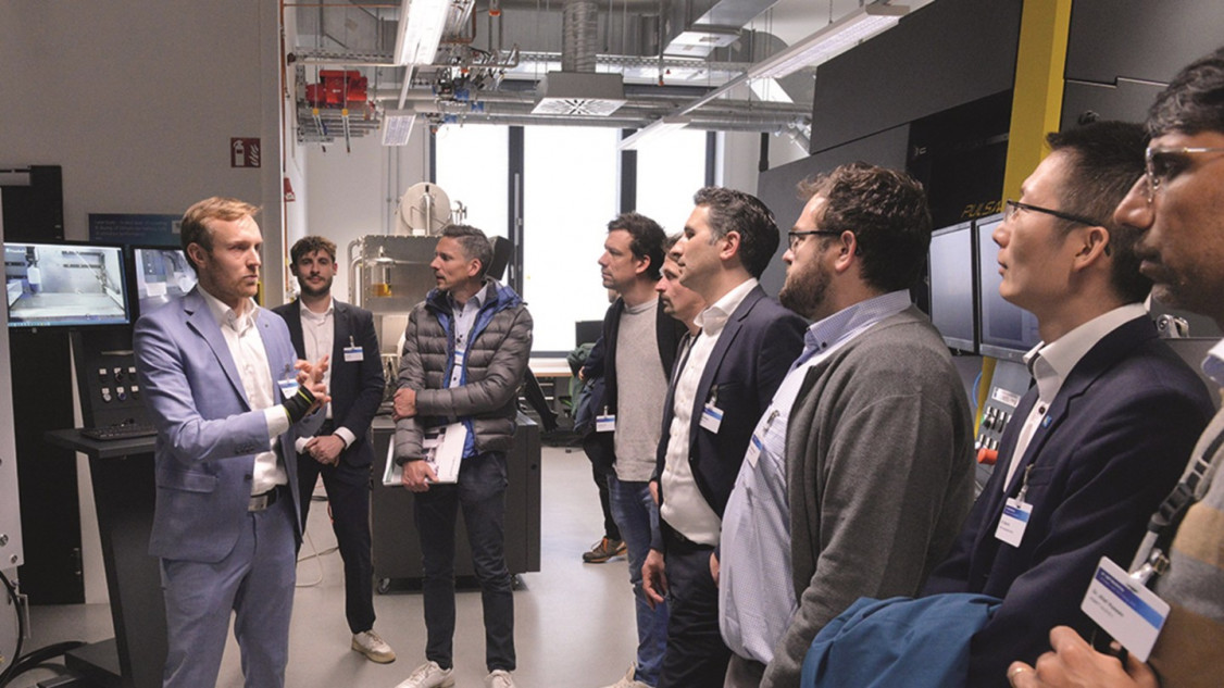 Der Rundgang durch die Labore des Fraunhofer ILT, des RWTH Forschungscampus Digital Photonic Production sowie des RWTH Aachen – Lehrstuhl für Lasertechnik und RWTH Aachen – Lehrstuhl für Technologie Optisccher Systeme bot mit neun Stationen die Chance, sich viele der im Workshop vorgestellten Technologien live anzusehen. Eine präsentierte Anwendung war das Selektive Laser-induzierte Ätzen (SLE). Dabei schreibt der fokussierte Laserstrahl die Kontur des gewünschten Bauteils in einen Glasrohling und dieser wird anschließend über einen Ätzprozess freigelegt.