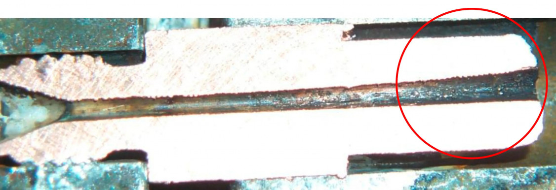 → Die Folge: Der Drahtlauf ist nicht mehr zentriert, der TCP ist beeinträchtigt
