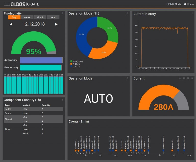 Das neue System besteht aus der anlagennahen Hardware und den drei Softwaremodulen „Produktion“, „Qualitätsmanagement“ und „Service“. Im ersten Schritt bietet CLOOS ab Anfang Januar das Softwaremodul Produktion an. Damit können Anwender die Performance und Wirtschaftlichkeit ihrer Roboteranlagen darstellen, Engpässe lokalisieren und die Effizienz steigern.