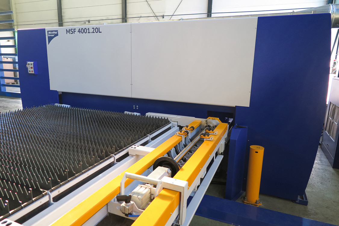 Die Laserschneidanlage hat eine Arbeitsfläche von 4.000 x 2.000 Millimetern inklusive vollautomatischem Wechseltisch zur Be- und Entladung des Flachmaterials. Das spart teure Stillstandzeiten beim Wechseln der Werkstücke.