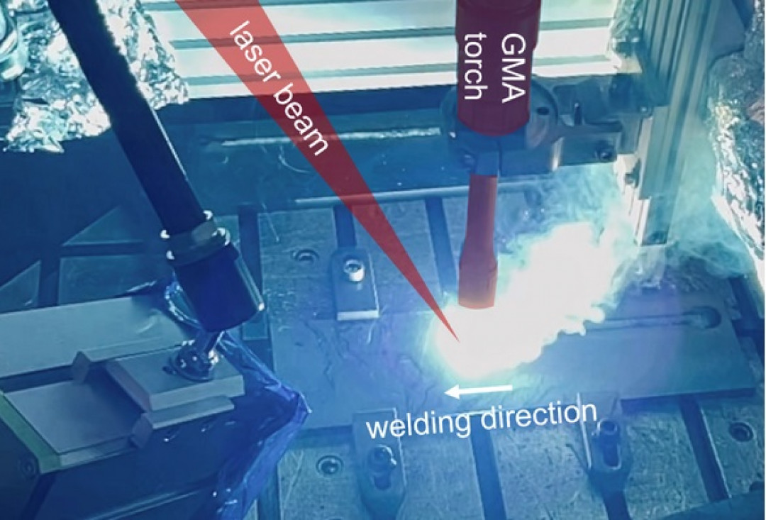 When welding thick sheets, large seam gaps must be bridged. Researchers of the "ÖkoHybrid" project want to enable closing the gaps with fewer layers, by feeding in a relatively thick wire with a diameter of 3 mm. This should make the joining process significantly faster and more resource efficient. An additional laser beam was used to accelerate and stabilize the process.