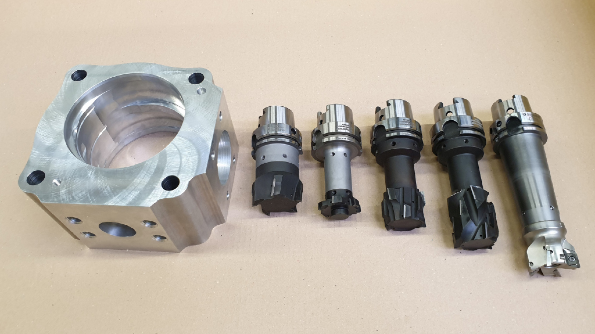 Die Sonderwerkzeuge wurden so gewählt, dass sie für eine große Vielfalt an Werkstücken geeignet sind. Manche Bearbeitungen, für die sie ausgelegt sind, kommen auch an anderen Bauteilen vor. So wurde beispielsweise ein Werkzeug exakt auf die Nutenbreite von 12,5 mm an einem Werkstück ausgelegt, von dem pro Jahr 5.000 Teile gefertigt werden. Mit demselben Werkzeug kann auch die 15 mm breite Nut eines anderen Bauteils gefräst werden. Die Bearbeitung in zwei Durchgängen dauert zwar etwas länger, was aber bei der geringeren Stückzahl von 200 Bauteilen kaum ins Gewicht fällt. Immerhin wurde damit ein zusätzliches Werkzeug eingespart. Insgesamt lassen sich alle 9 Bauteilvarianten mit einem Satz von 23 Werkzeugen komplett bearbeiten.