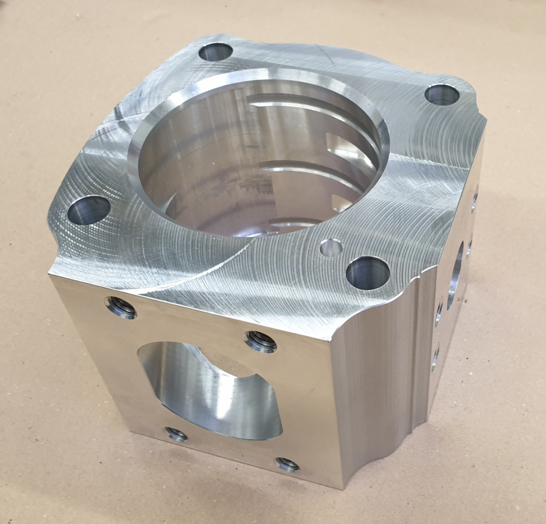 Von außen wirken die Aluminiumgehäuse eher unscheinbar, doch das komplexe Innenleben ist für die Fertigung eine Herausforderung. Die Hauptbohrung enthält unterbrochene Nuten, die sichelförmig eingebracht sind, um den Kompressionsbereich der Pumpe mit Saug- und Drucktaschen darzustellen. Intern werden sie als D-, Z-, J&E- oder C-Nuten bezeichnet. Die Übergangspassungen zwischen verschiedenen Nuten gilt es gratfrei herzustellen, teilweise sind hier auch Hinterschnitte erforderlich. Für den gesamten Innenbereich werden hohe Oberflächengüten verlangt. Positions- und Winkeltoleranzen liegen im Bereich von 1/100 mm. Uwe Leimser, technischer Berater bei INGERSOLL, war bereits früher in die Fertigung solcher Pumpengehäuse involviert und weiß, weshalb die Anforderungen so hoch sind: „Die Komplexität der Innenkonturen sind ausschlaggebend für die Präzision und somit der Funktion der Pumpe.“ Damit werden auch die Drücke garantiert, welche die Hydraulikpumpe schließlich aushalten muss. Für seine EIPS-Reihe gibt Eckerle einen Dauerbetriebsdruck von 250 bar und einen Spitzenbetriebsdruck von 320 bar an.