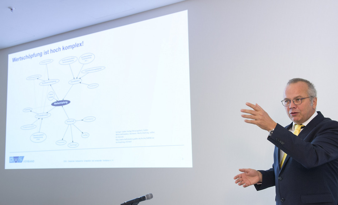 Der DVS-Hauptgeschäftsführer präsentierte nicht nur die erwirtschaftete Wertschöpfung in Deutschland, sondern auch die Daten wichtiger Länder innerhalb Europas sowie der gesamten Europäischen Union (EU28), in denen Fügetechnik eine wichtige Rolle spielt. Insgesamt liegt der Wertschöpfungsbeitrag bei 72 Mrd. Euro mit 1,2 Mio. Beschäftigten in den FTB-Techniken. Damit erbringt Deutschland mit fast 30 Prozent den Großteil an Wertschöpfung und sichert die meisten Arbeitsplätze.