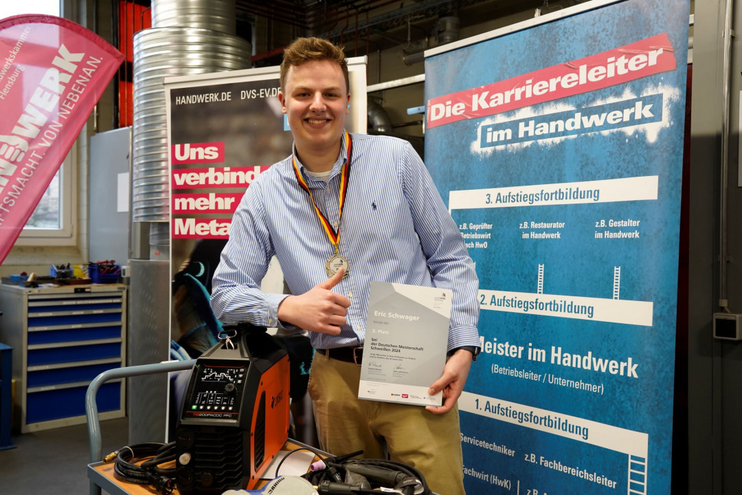 Eric Schwager aus Sterup ist einer der Besten. Nachdem er im Jahre 2023 beim Bezirkswettbewerb „Jugend schweißt“ in Flensburg den ersten Platz im WIG-Schweißen belegte, gelang ihm der gleiche Erfolg auf Landesebene. Beim Bundeswettbewerb in Essen erreichte er einen verdienten vierten Platz und qualifizierte sich damit für die Deutsche Meisterschaft im Schweißen 2024 in Frankfurt am Main. Dort konnte er sich dann mit einem hart erkämpften zweiten Platz durchsetzen. „Das war eine harte Woche und wir haben täglich mehrere Stunden geschweißt. Da kommt man schon ins Schwitzen“, sagt Schwager.