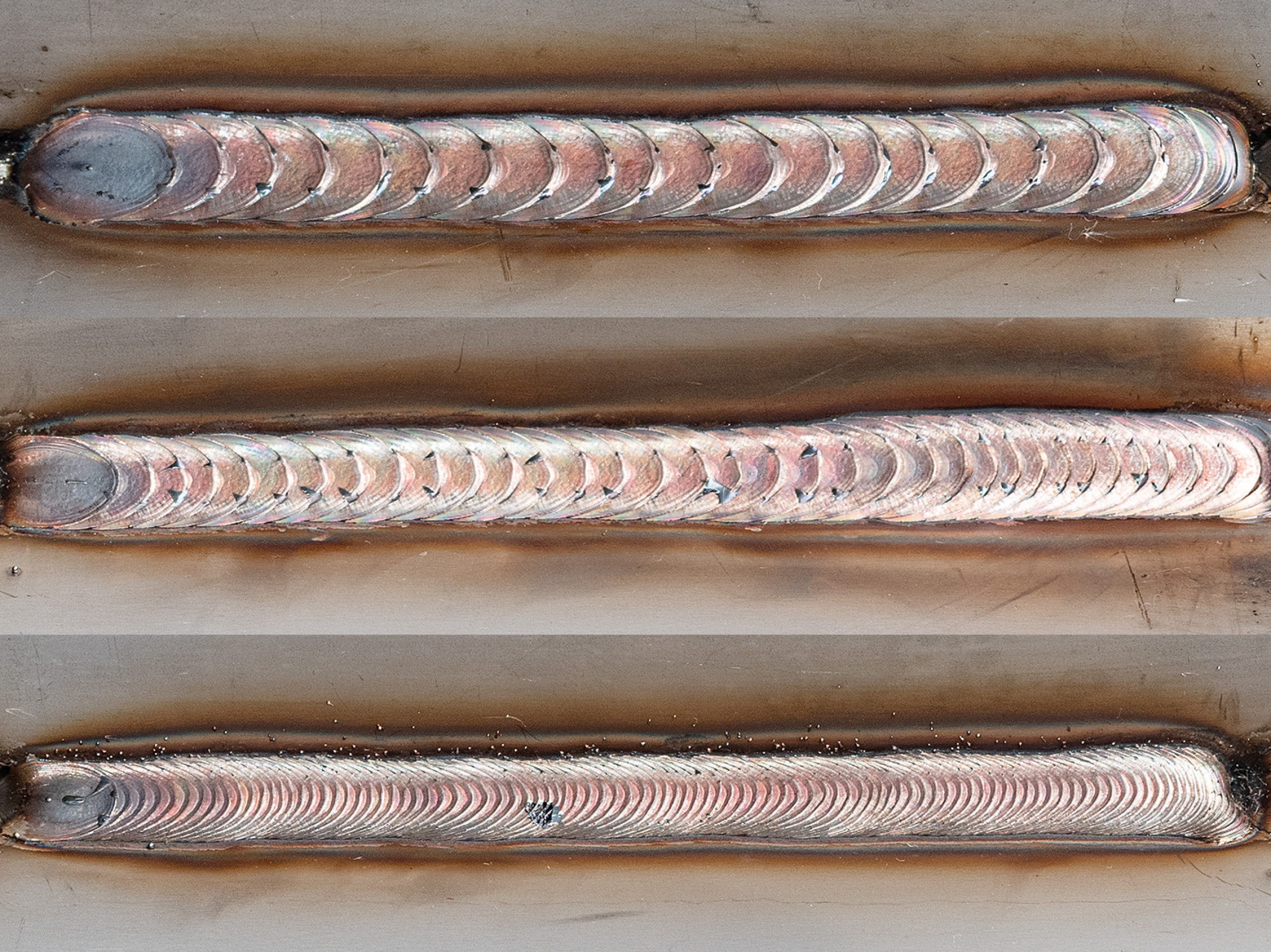 In der Vergangenheit wurde zum WIG-Verfahren gegriffen, um bei Aluminium, Edelstahl (CrNi) und dünn- bis mittelwandigen Stahlapplikationen besonders schöne, gleichmäßig geschuppte Nähte zu erzielen. Die Herausforderung: Das WIG-Verfahren in seiner Reinform ist zeitaufwändig und kann mit der Produktivität des MIG-MAG Verfahrens nicht konkurrieren. Mit dem neuen MicorTwin-Schweißprozess von Lorch wird nicht nur eine um 100 Prozent höhere Schweißgeschwindigkeit erreicht, sondern – wie ein Vergleich der Schweißnähte zeigt – bietet MicorTwin sogar eine dem WIG-Verfahren in nichts nachstehende Nahtoptik.