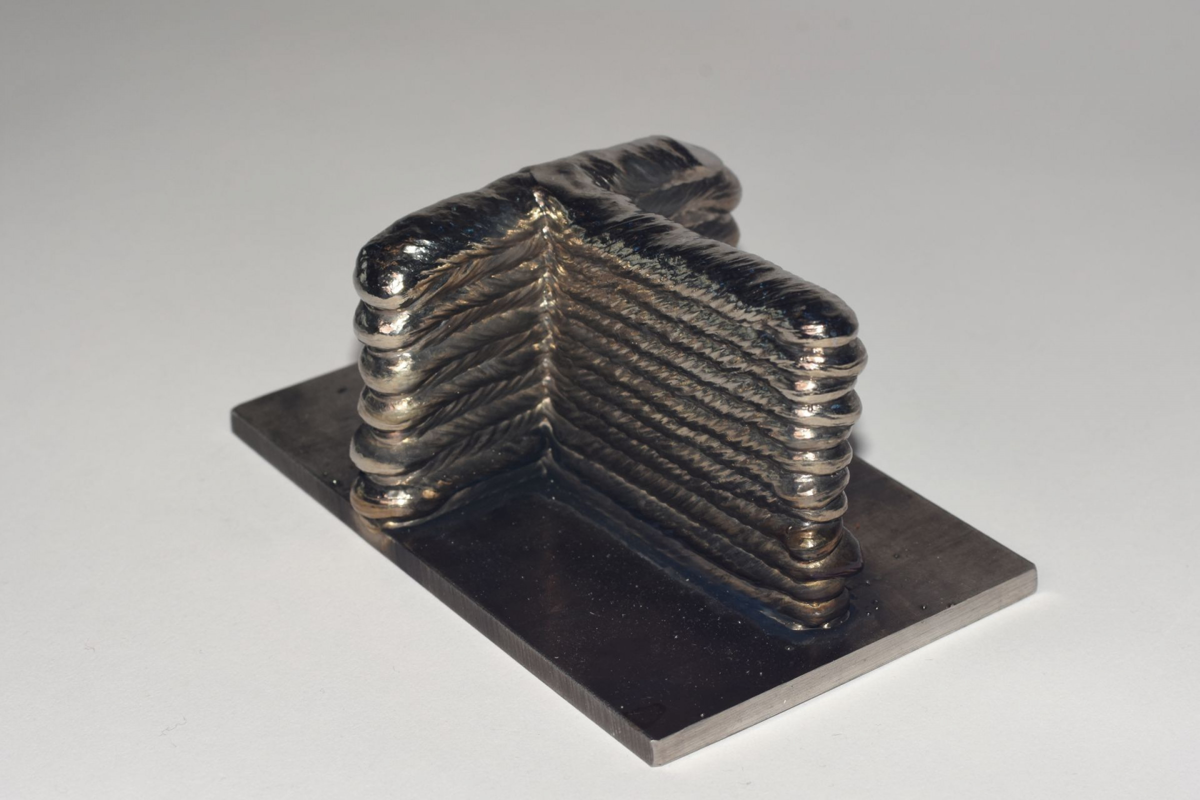 Für die Bauteilfertigung mit WAAM sind die Stabilität des verwendeten Schweißprozesses und die Wärmeableitung entscheidend. Der Schweißprozess muss so energiearm, also so „kalt“ wie möglich sein, damit die unteren Schichten nicht erneut aufschmelzen. Außerdem muss die geschweißte Lage durchgängig, spritzerfrei und gleichmäßig sein. Käme es zu einem Fehler, würde sich dieser in den Lagen darüber fortsetzen.