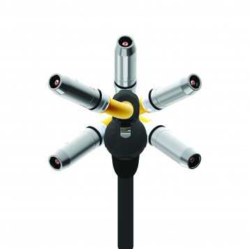 Integrierte Doppelgriffe mit erhöhter Rippung für entspannten Griff, überlegenen Komfort und einfache Handhabung. Schraubenloses Design mit modularer Passform. High-Flex Kugelgelenk-System für maximale Manövrierfähigkeit.