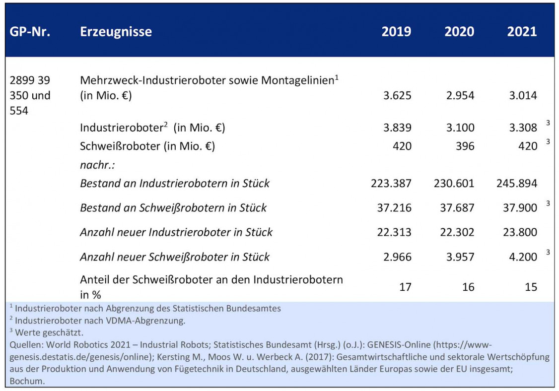 Tabelle 3: Produktionsergebnisse für deutsche Industrieroboter. © DVS