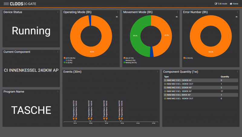 Alle Daten und Funktionen stehen über Schnittstellen bereit. Viessmann nutzt diese Schnittstellen, um die Daten in einem eigenen Dashboard bzw. Visualisierungswerkzeug zu konsolidieren und darzustellen. Das C-Gate selbst bringt ebenfalls ein Dashboard und Auswerteroutinen mit, die speziell auf den Prozess der Schweißfertigung vorein- gestellt sind.