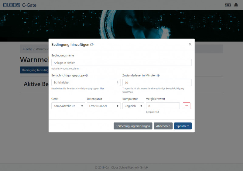 Visualisierung, Auswertung und Weiterverarbeitung von Betriebs- und Schweißprozessdaten – das C-Gate der Carl Cloos Schweißtechnik GmbH erfasst und verarbeitet sämtliche Daten in einem zentralen System. Als Pilotkunde testet die Viessmann Werke Berlin GmbH das ganzheitliche Informations- und Kommunikationstool in der eigenen Fertigung. „Mit dem neuen C-Gate können wir unsere Roboteranlagen vernetzen und unsere Fertigungsprozesse verbessern“, sagt Bernhard Rothkegel, Programmierer bei Viessmann in Berlin.