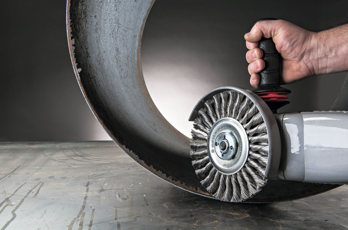 Von hoher Relevanz ist an dieser Stelle auch, ob die Bürste im Rahmen eines trockenen oder nassen Verfahrens zum Einsatz kommt. Werden etwa prozessbegleitende Medien wie Kühlschmiermittel oder Öl eingesetzt, so ist unbedingt auf die entsprechende Beständigkeit des Besatz- und Körpermaterials der Bürste zu achten. Gleiches gilt, wenn die Bürste vor, während oder nach der Anwendung mit Lösungsmitteln, Säuren oder Laugen in Kontakt kommt. In diesem Fall muss der Faktor Chemikalienbeständigkeit mit in die Auslegung einbezogen werden. Und bei Einsatzumgebungen mit korrosiver Wirkung sind sämtliche Komponenten der Bürste daran anzupassen. Dies erfolgt durch die Verzinkung metallischer Flächen oder durch die Verwendung von Edelstahl und technischen Kunststoffen.