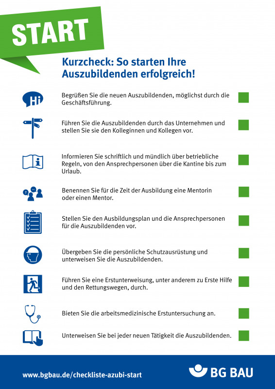 Zum Ausbildungsstart: BG BAU unterstützt Unternehmen mit Azubi-Checkliste