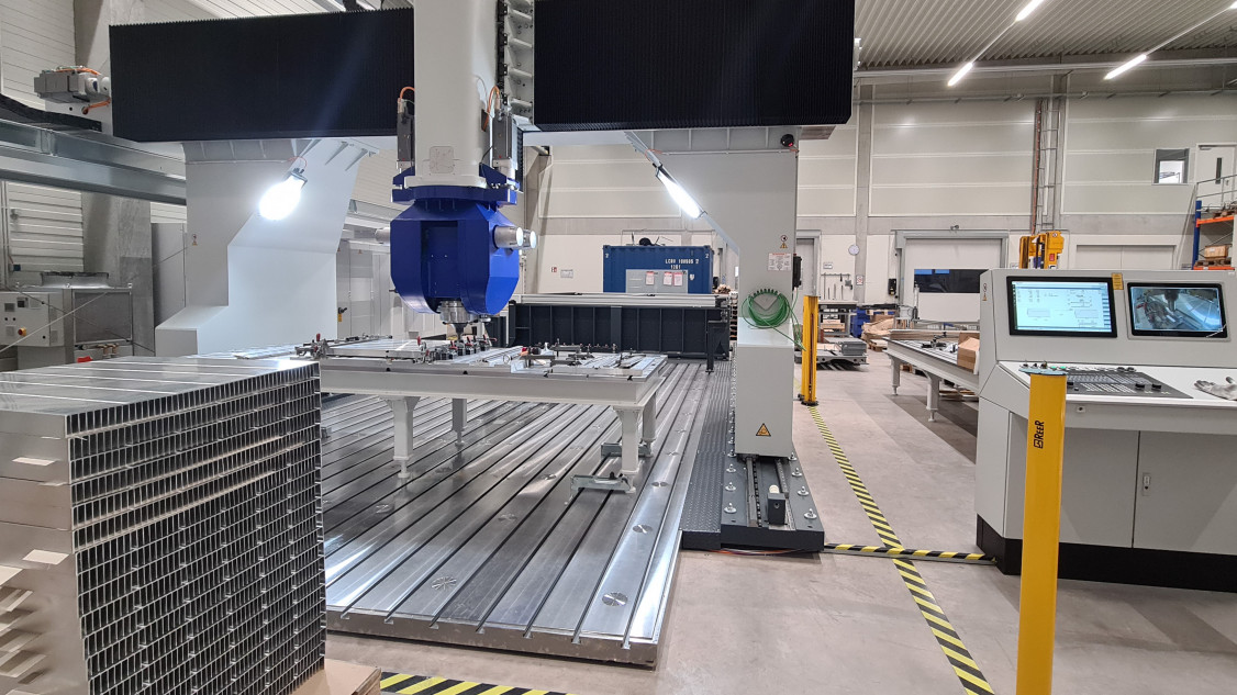 Bei alleiniger Verwendung der oberen 5-achsigen Spindel sind komplexe dreidimensionale Bauformen mit bis zu 30 Millimeter Einschweißtiefe möglich. Oder auch Platten in Größen von bis zu 8 x 3,5 Meter. So werden beispielsweise Batterieböden für E-Fahrzeuge, Kühler oder sonstige Gussbauteile auf der Anlage rührreibgeschweißt. Aber auch für kleine Bauteile und geringe Einschweißtiefen ist die große Portalmaschine geeignet. Legierungsabhängig sind Einschweißtiefen ab 0,5 Millimeter möglich - das sind ungefähr 80 Lagen einer haushaltsüblichen Alufolie.