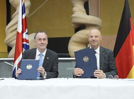 Seit 1975 regelt der Normenvertrag die partnerschaftliche Zusammenarbeit zwischen der Bundesrepublik Deutschland und DIN.