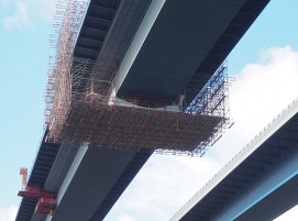 Nach einer Kran-Kollison werden die Holtenauer Hochbrücken in Kiel seit mehreren Monaten repariert. Kollegen der SLV Nord begleiten die Arbeiten als Bauüberwacher.