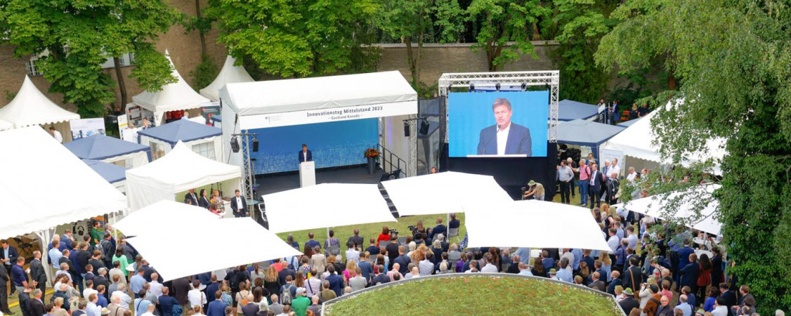 Das Bundesministerium für Wirtschaft und Klimaschutz (BMWK) lädt am 13. Juni 2024 zum Innovationstag Mittelstand nach Berlin-Pankow ein. Etablierte mittelständische Betriebe und aufstrebende Start-ups sowie ihre Kooperationspartner aus Wirtschaft und Forschung präsentieren bei der Open-Air-Veranstaltung ihre zukunftsweisenden Produkte, Verfahren und Dienstleistungen, die mit Unterstützung der themenoffenen Innovationsförderung des BMWK realisiert werden konnten.