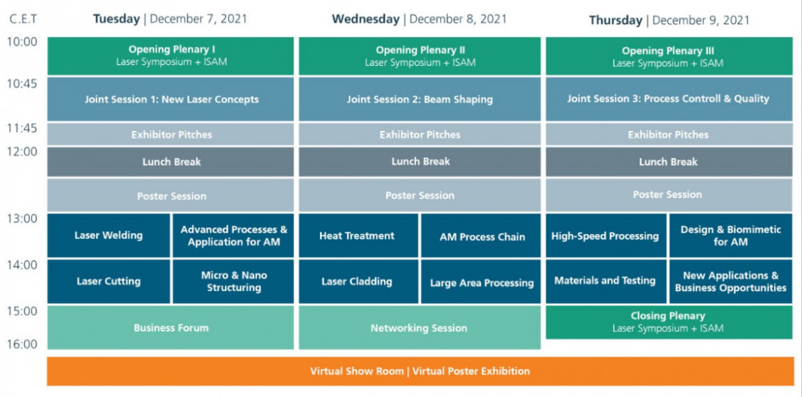 Zum elften Mal in Folge bringt das Lasersymposium 2021 die weltweit führenden Laserexperten, Endanwender und Newcomer aus Industrie und Wissenschaft zusammen. Mit dem Schwerpunkt auf den neuesten Laserentwicklungen und deren Eignung für industrielle Anwendungen bietet es eine ideale Plattform für den wissenschaftlichen und technischen Austausch über verschiedene Aspekte der Lasermaterialbearbeitung.