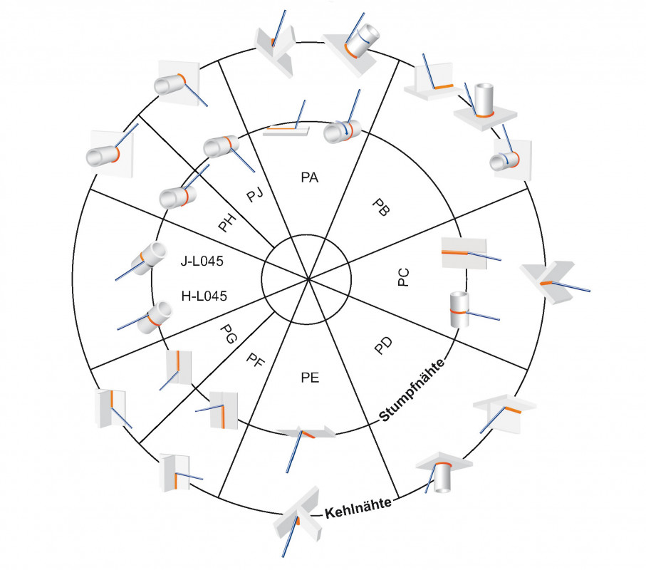 Alle übrigen Schweißpositionen liegen zwischen diesen beiden Extremen.