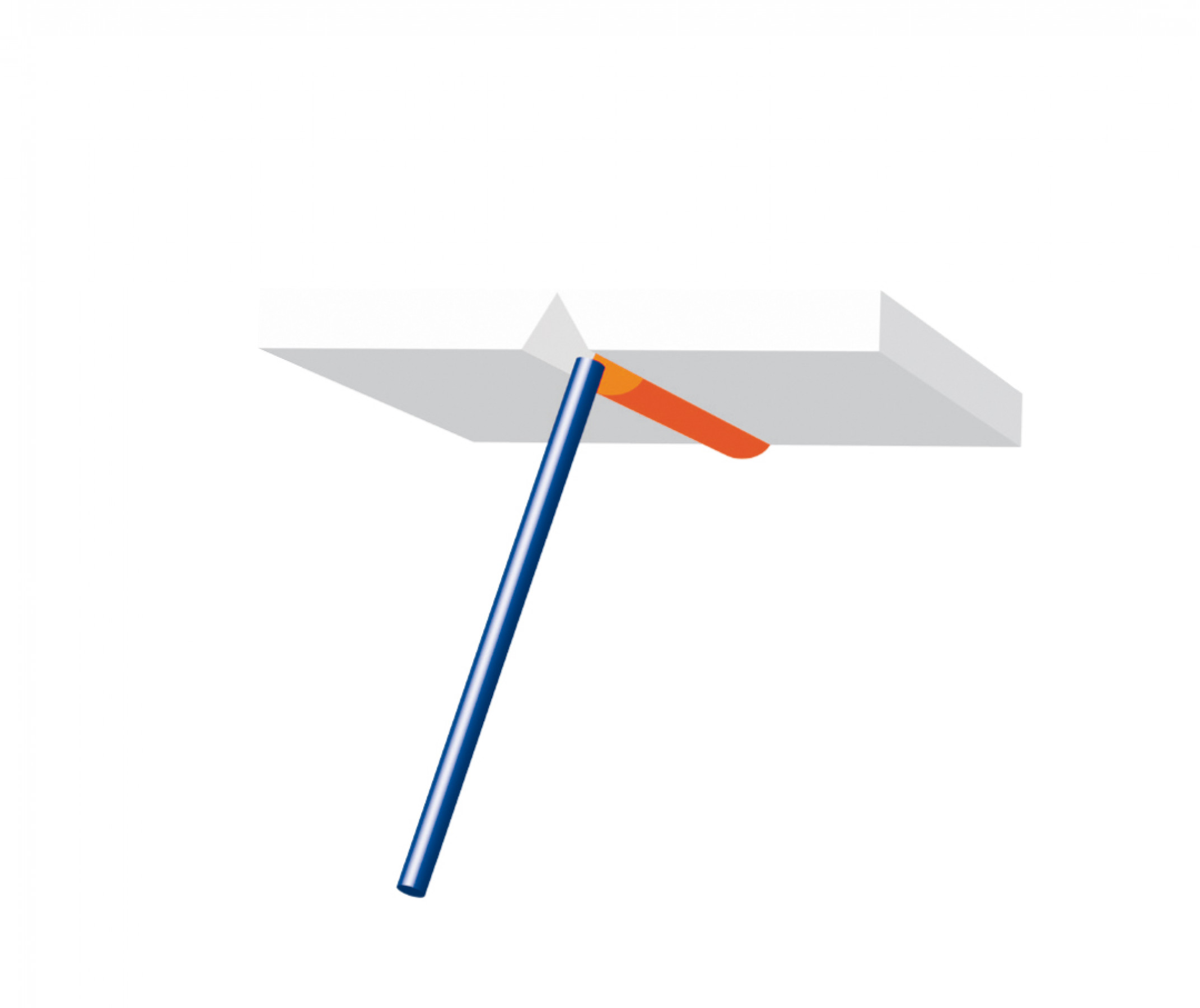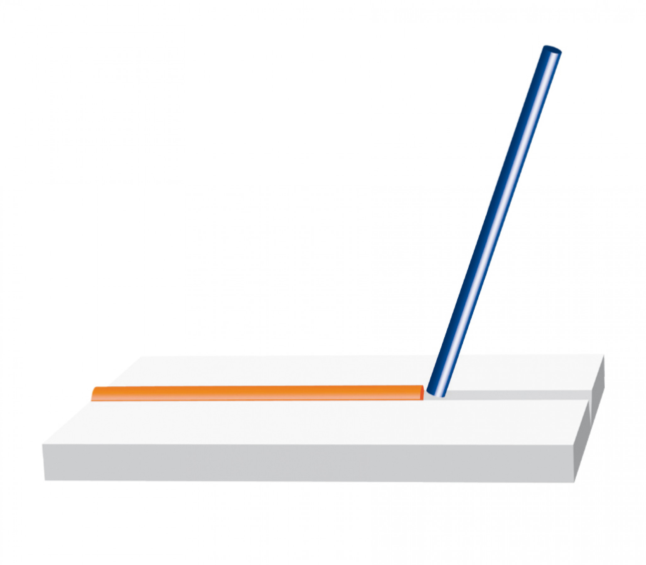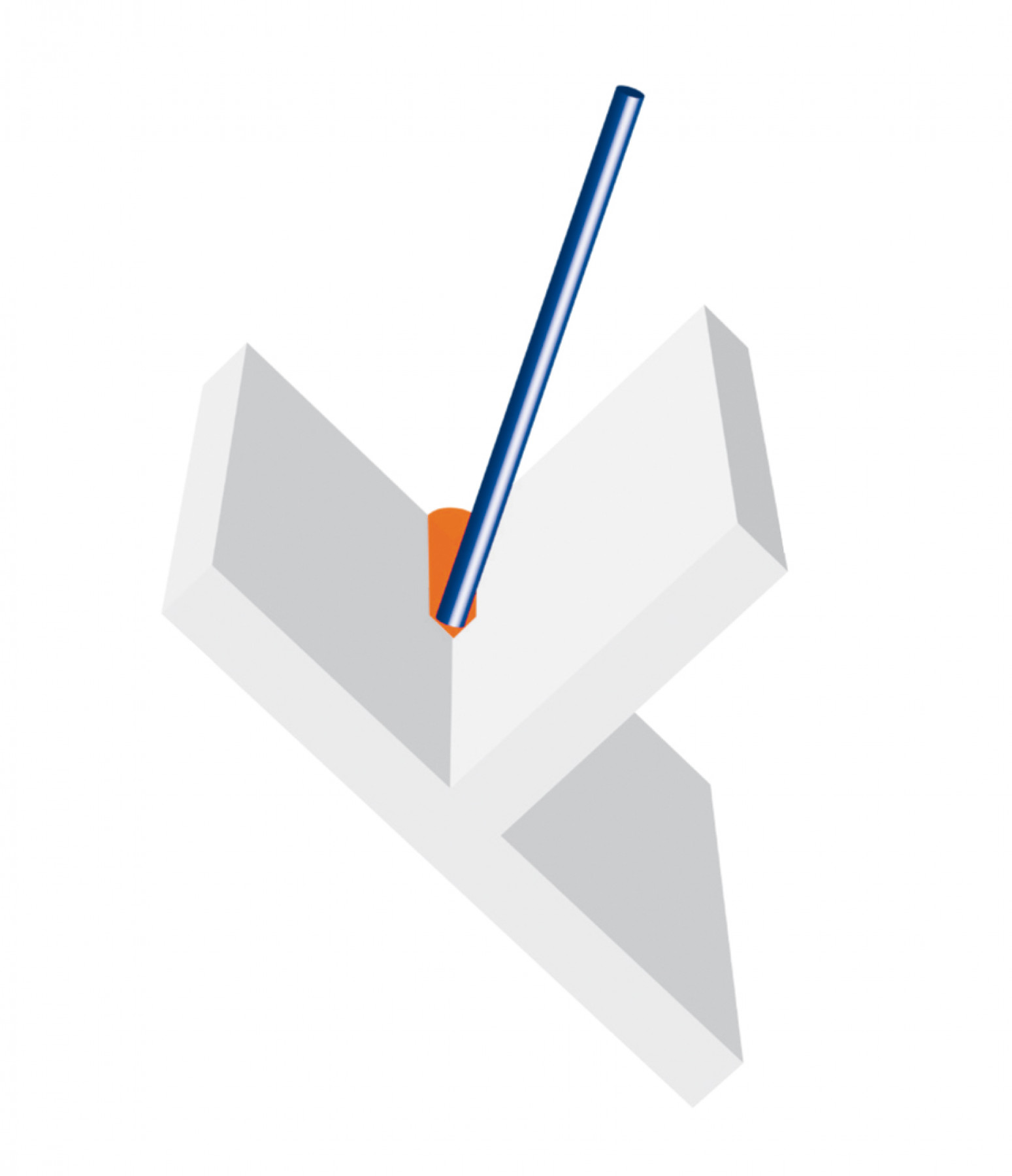 Die Schweißnahtoberfläche steht in einem Winkel von 45° zur Senkrechten.