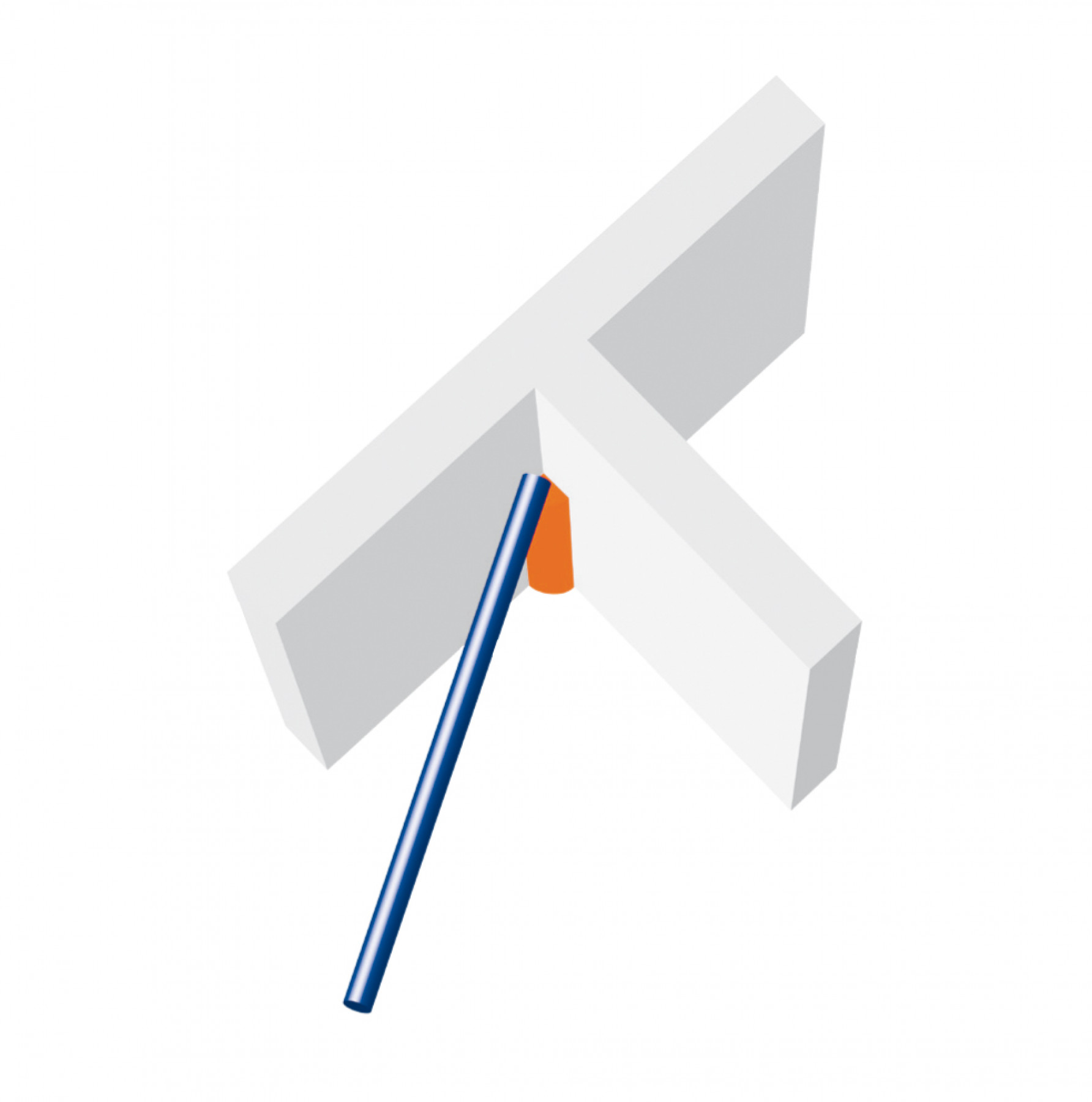 Die Schweißnahtoberfläche steht in einem Winkel von 90° zur Senkrechten.